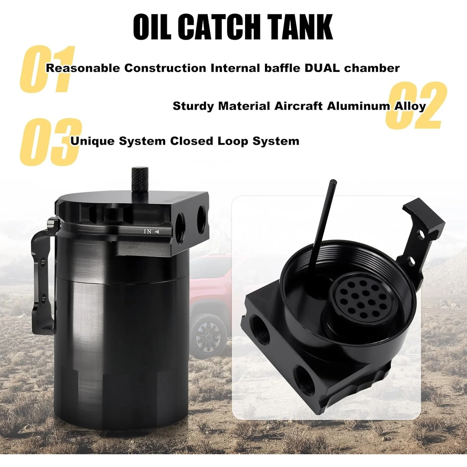 - Increases Horsepower& Keep Engine Clean: This Oil Separator can catch the oil and moisture in the blow-by gas that causes carbon and sludge build-up in the intake system and the engine. It will prevent the dirt and oil from your intake system into your car engine which can keep the engine clean and preserve engine life